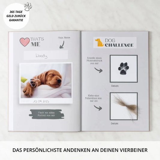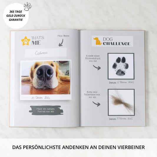 Das Dog Challenge Book ist eine schöne Möglichkeit, wundervollen Erinnerungen und Momente mit deinem Hund festzuhalten. 🥰Das Erinnerungsbuch ist perfekt, um Fotos von gemeinsamen Abenteuern, Herausforderungen und Aktivitäten festzuhalten, auch für spaßige Bilder ist genügend Platz. Dieses Buch ist eine großartige Möglichkeit um die Bindung mit deinem Hund zu stärken und zu festigen.